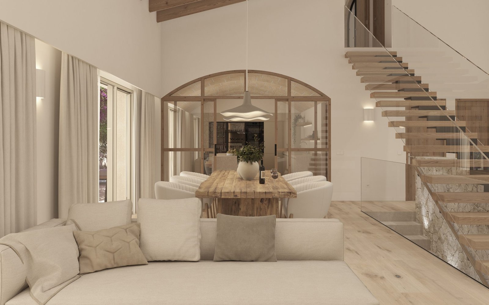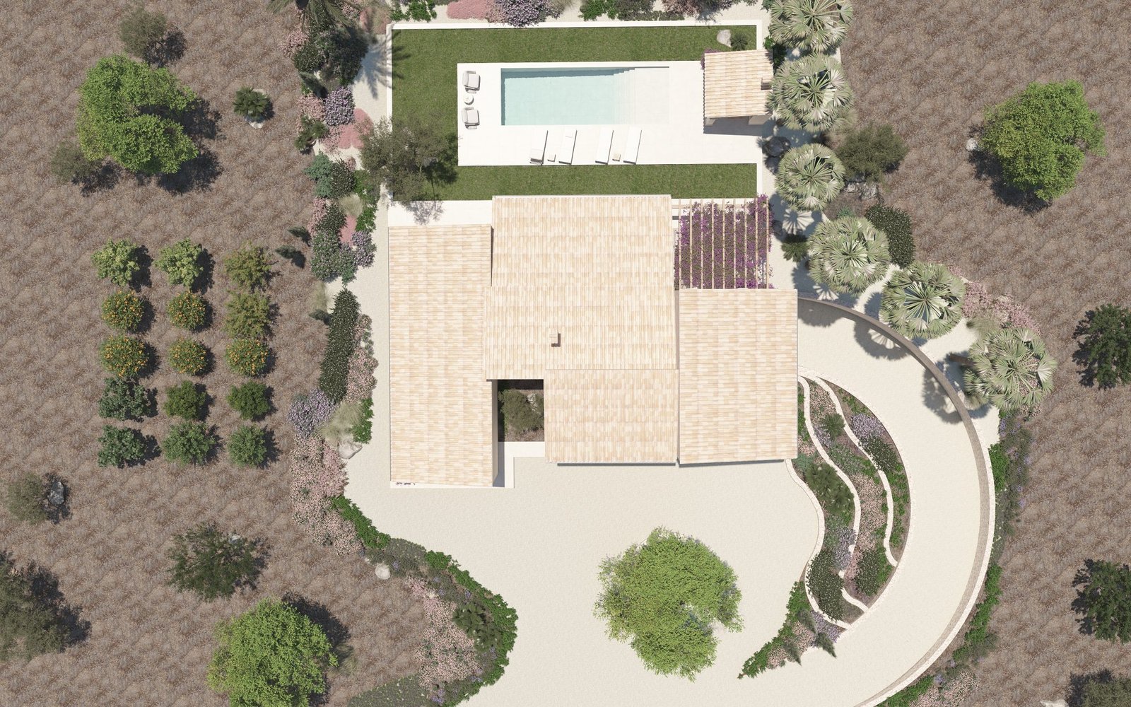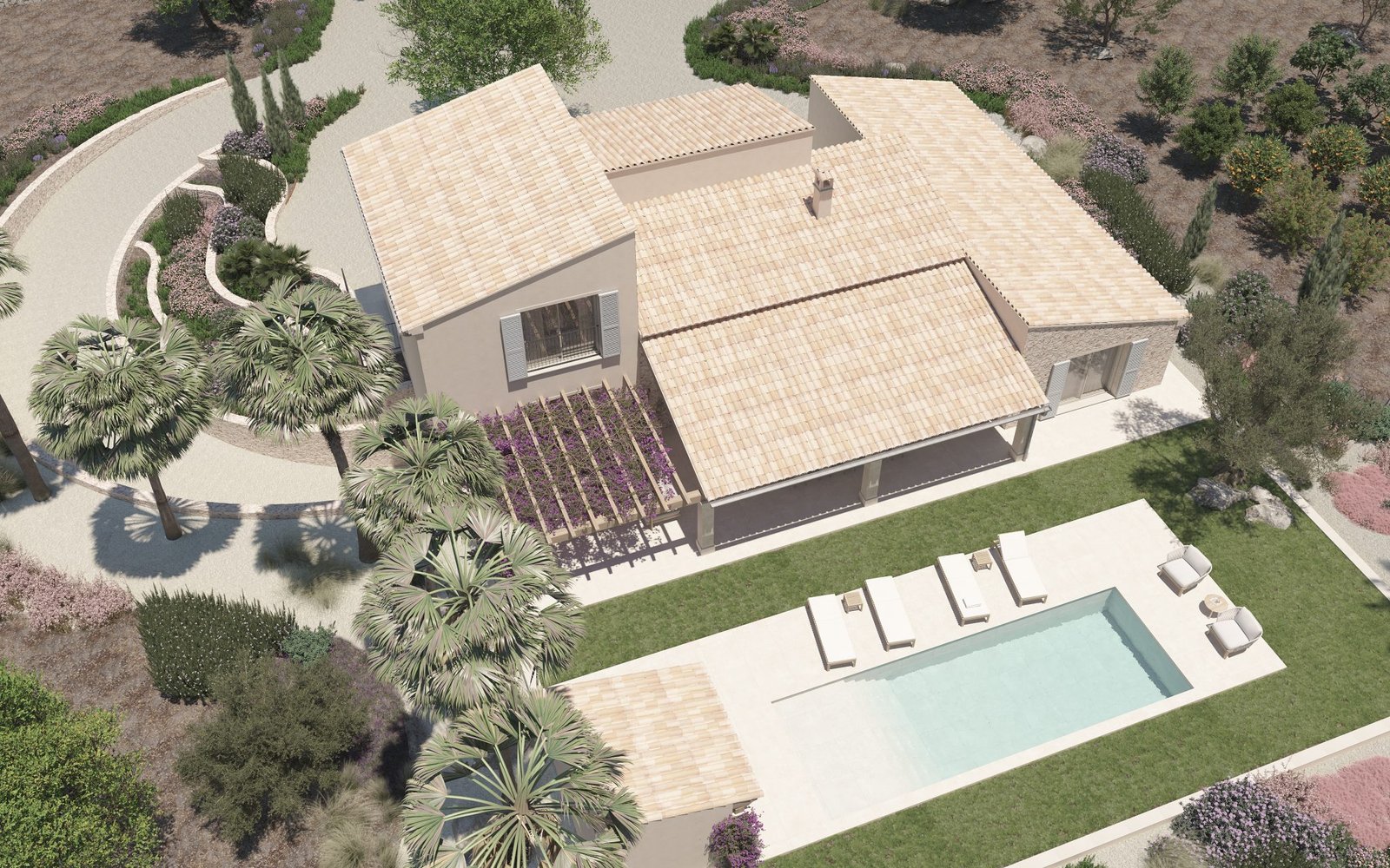 This impressive sea-view construction, blending style and comfort, graces the paradisiacal Cala D’or, situated on a rustic 17,000m2 plot with a total area of 361.95m2, offering a lavish Mediterranean coastal living experience. Spread across three floors, the house includes 250m2 of living space, a 161.51m2 basement, along with porches, terraces, pergolas, and a swimming pool. The basement encompasses a spacious garage and an engine room, providing functionality and comfort. On the ground floor, an elegant entrance hall opens into a generous living-dining room, a fully equipped kitchen, two bedrooms, three full bathrooms, two walk-in closets, and a laundry room. The first floor features an additional bedroom, a study, a hallway, an extra bathroom, and a dressing room.